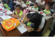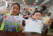 課堂中,小朋友們獲得了不少關(guān)于橋梁建筑的小知識,利用捐贈的文具畫出他們心目中的大橋。