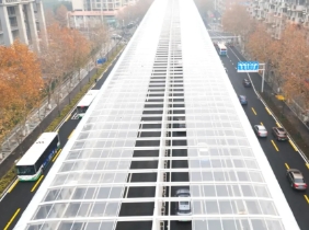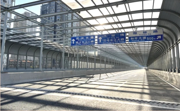? ? 項目設(shè)計團隊始終秉持 “輕量化、智能化、綠色化” 理念,多項技術(shù)應(yīng)用填補區(qū)域空白,樹立行業(yè)新標桿。在鋪裝材料與工藝上,主線高架鋼箱梁橋面采用澆注式瀝青鋪裝,相比傳統(tǒng)方案減重16%,既降低橋梁結(jié)構(gòu)負荷、提升安全性,又縮短施工周期;鋼箱梁采用U肋全熔透智能焊接,大幅提高結(jié)構(gòu)疲勞壽命,積極推進鋼箱梁U肋焊接工藝的發(fā)展。尤為引人注目的是,本項目集中展現(xiàn)了三大創(chuàng)新亮點:它擁有全國最長的連續(xù)全封閉聲屏障,是湖北省首例“光伏+市政”的融合實踐,更在武漢率先實現(xiàn)了聲屏障光伏發(fā)電的應(yīng)用,為綠色市政建設(shè)樹立了新的樣板。