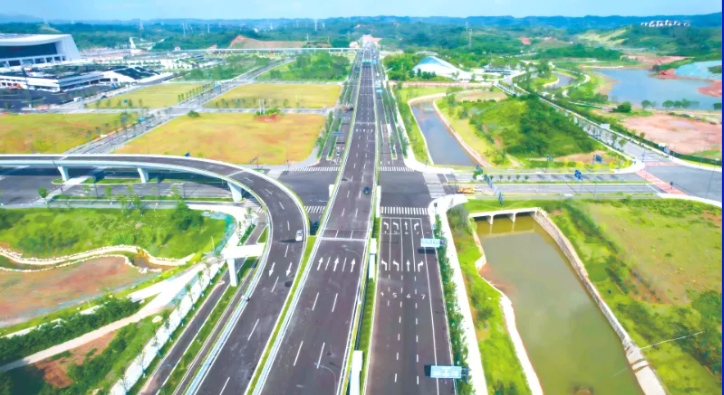 作為宜昌中心城區(qū)“四縱六橫”快速路網(wǎng)中跨江環(huán)線的關(guān)鍵組成部分,花溪路自規(guī)劃之初便肩負(fù)著連通高鐵新城與主城區(qū)、優(yōu)化城市空間布局的重要使命。項目全長約13.84公里,按照城市快速路標(biāo)準(zhǔn)精心打造,設(shè)計時速達(dá)80公里,主線采用雙向6車道布局,并在人口密集、交通需求較大的區(qū)域增設(shè)4條輔道,實現(xiàn)主線快速通行與輔道便捷接駁的高效銜接。同時,道路巧妙串聯(lián)現(xiàn)有小鴉路、峽州大道及沿江方向快速通道,最終接入昌磷路,形成“內(nèi)外聯(lián)通、縱橫交織”的交通網(wǎng)絡(luò),進(jìn)一步織密宜昌快速交通骨架。
