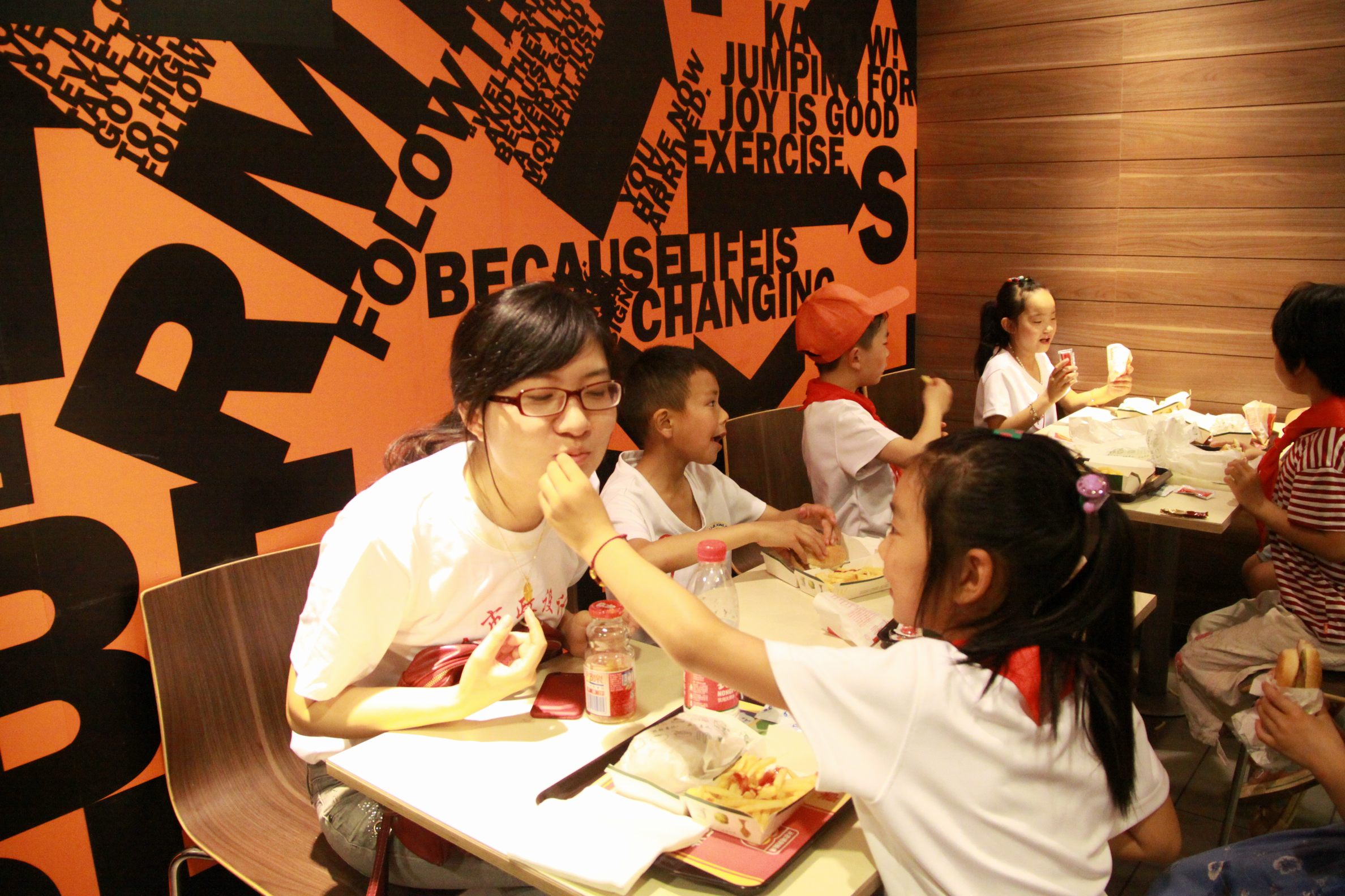 ??? 中午時(shí)分,孩子們乘車來(lái)到公司,公司黨委書記蔡輝、副總經(jīng)理趙世杰走出辦公樓歡迎師生們的到來(lái),并與他們合影留念。隨后,志愿者與小朋友們一起來(lái)到麥當(dāng)勞餐廳共進(jìn)午餐,餐廳游樂(lè)區(qū)的玩具引起了孩子們的極大興趣,他們上攀下爬,玩的不亦樂(lè)乎。