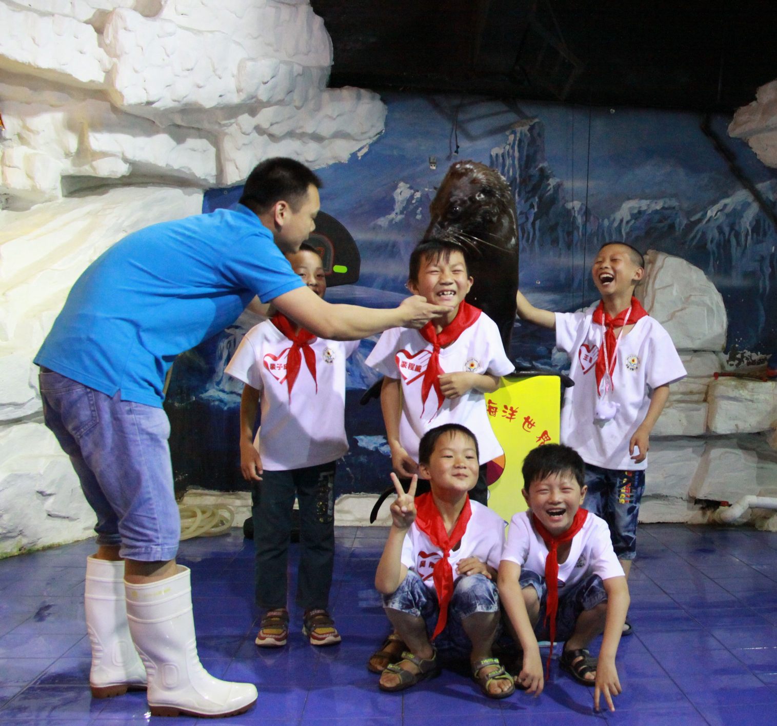 ??? 經(jīng)過(guò)短暫的休整,大家乘車來(lái)到東湖海洋世界進(jìn)行參觀。剛一進(jìn)館,孩子們就被一片神秘的海底世界所吸引了,他們趴在玻璃上欣賞著自己從沒(méi)見過(guò)的海洋動(dòng)物,和喜歡的動(dòng)物合影,穿過(guò)海底隧道時(shí),時(shí)而出現(xiàn)的海洋動(dòng)物都能讓他們發(fā)出一陣陣的驚嘆。美人魚表演和海豹表演更讓孩子們開心不已,他們不停的拍手鼓掌,并輪流和可愛的海豹合影。