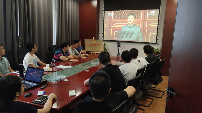 公司領(lǐng)導(dǎo)、總經(jīng)理助理、駐總院辦公的部門負(fù)責(zé)人、支部書記在西四樓會議室集中收看大會盛況。大會伊始,在轟鳴的禮炮聲中,國旗護衛(wèi)隊護衛(wèi)國旗颯爽登場;全場肅立高唱《國歌》,高亢的旋律瞬間營造了莊嚴(yán)肅穆的氛圍;少先隊員和共青團聯(lián)合獻詞,回顧黨的光輝歷史,表達對黨的熱愛與忠誠。大會現(xiàn)場氣氛莊嚴(yán),激昂奮進,讓收看的人仿佛置身現(xiàn)場,親臨盛典。