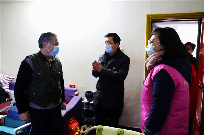 在古二社區(qū)書記徐培莉的陪同下,談逢陽(yáng)一行先后來(lái)到社區(qū)三位困難群眾家里中,詳細(xì)詢問了他們的家庭及生活情況,并為他們送上了慰問物品,叮囑他們要保重身體,鼓勵(lì)他們克服困難,以積極樂觀的精神狀態(tài)面對(duì)生活。